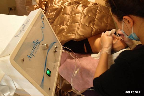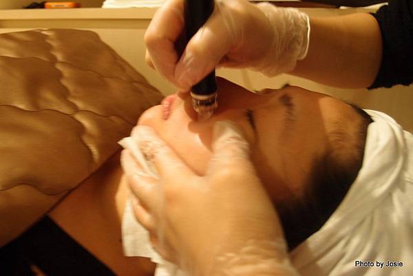 之後到美容室由專業的護理人員幫我清潔卸洗皮膚後就開始進行水微雕細緻保養的療程囉