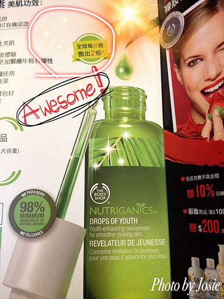 除此之外,這瓶也是The body shop第一支頂級抗老產品,擦了之後有助於後續保養品的吸收力.
