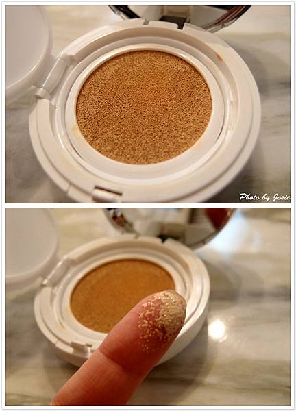 共四色可選擇,裡頭含有長效吸附水凝霜精華的海棉軟墊式蕊心與不吸水智慧型粉撲,擦起來很薄透,擁有韓系透亮的美肌