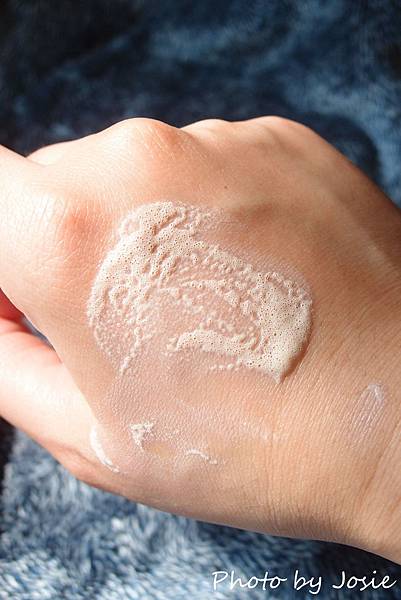 而泡沫推開是水狀的感覺清爽好推勻,一定要用海綿喔.用手則推不勻的