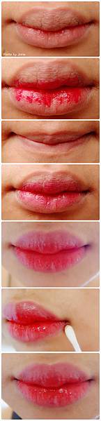 輕輕的抿一下(不要太用力 否則唇紋會很明顯效果會不好喔)