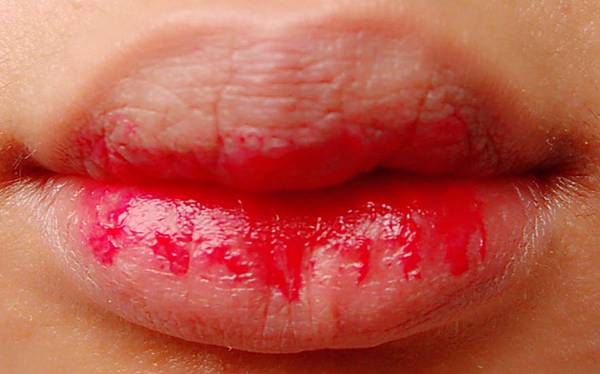 先用舒芙蕾輕輕拍在唇上,將唇部暗沉壓掉