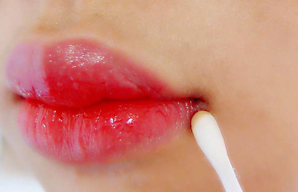 接著再將外圍薄薄塗一層剩餘的唇彩