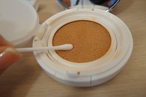 再用棉花棒沾些許的舒芙蕾修整一下唇周