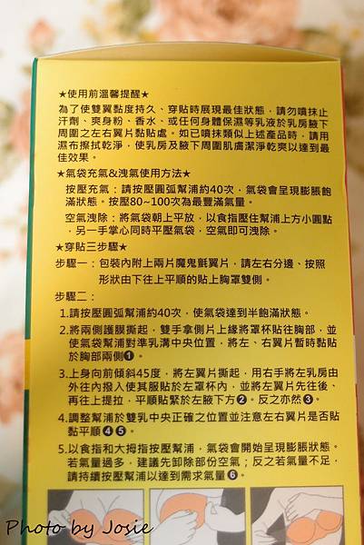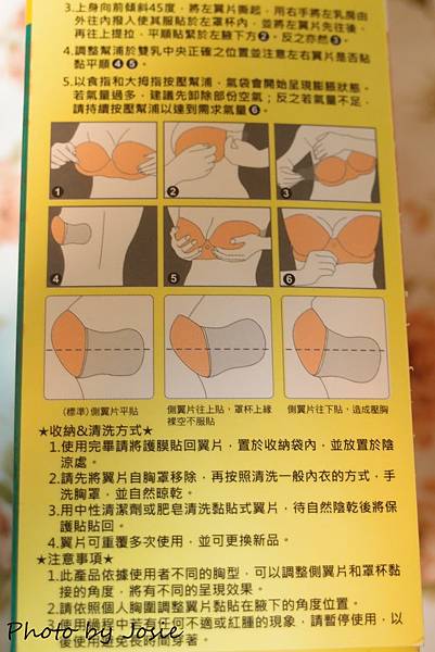 用第一次的時候真的不是很上手,也練習了好幾次,抓到一個訣竅就是"側翼片一定要跟胸部平行的貼"千萬不要角度往下或往上喔!