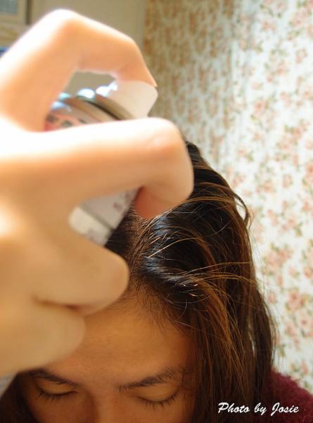 然後再距離髮根約30公分處噴灑,記得要分開均勻噴,不要太近距離或太集中
