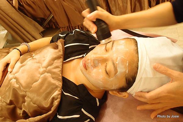 在雷射之前需要加強保濕讓雷射的效果更好,所以加了一道三溫暖保濕導入的課程