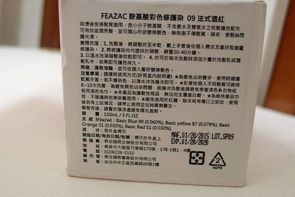 先來看看FEAZAC胺基酸彩色修護染的內容物吧