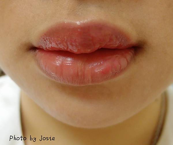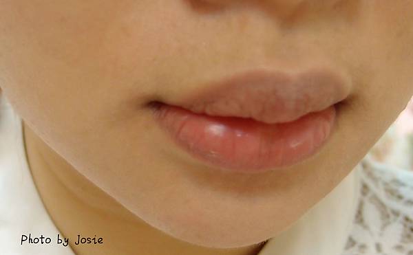 上唇刷了唇蜜,看起來唇紋減少了 看起來也比較有些精神