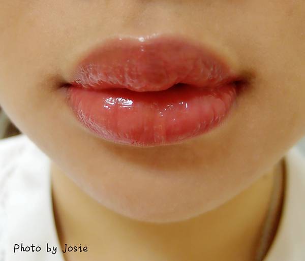 刷在唇上顏色有點淡淡的紅,帶有鏡光的透明感.