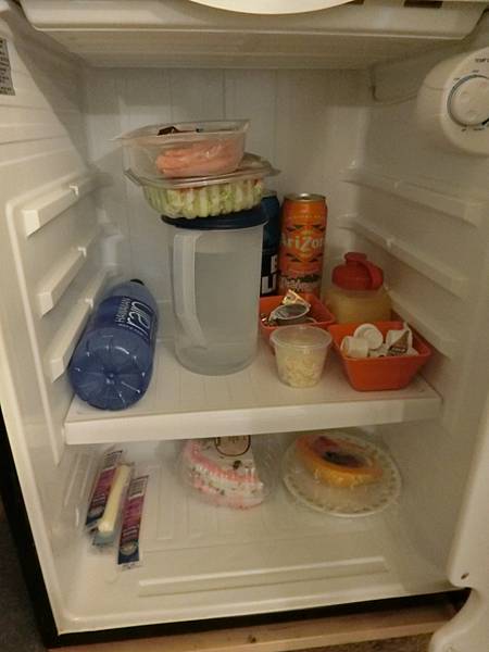 冰箱有水,柳橙汁還有切好的水果.