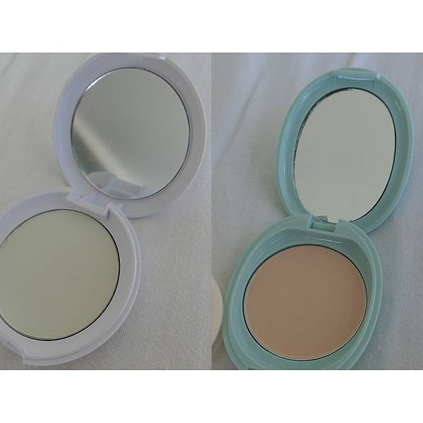 粉的顏色,I'M MEME我愛油光GG蜜粉餅是帶點淺綠礦物粉末,它牌則是膚色
