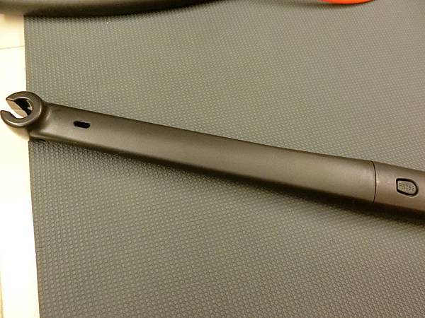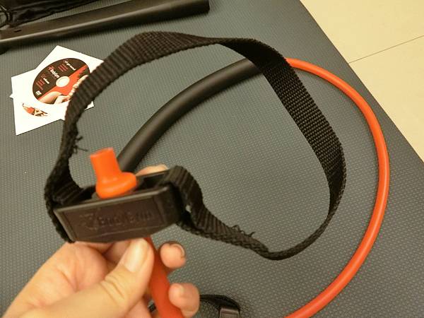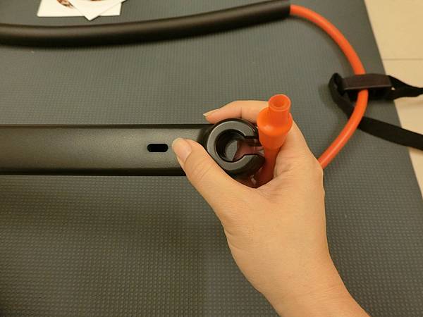 握棒與彈力繩組合的方式非常簡單,只要將繩子扣在握棒的圓圈裡即可