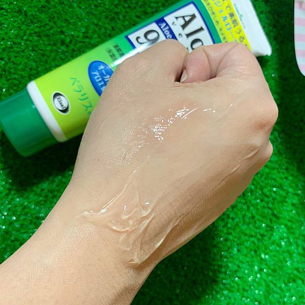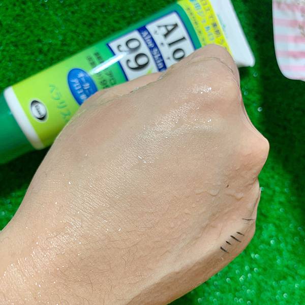 他沒有色素香料成分,透明凍狀可以拿來當化妝水,一抹就化開變水狀,而且不需要用化妝棉喔。