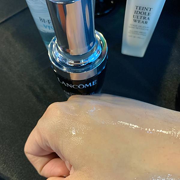超級黑瓶的質地比起上一代,質地變得更加輕盈、流動性更高,輕抹上肌膚後就能感受到極佳的滲透感,