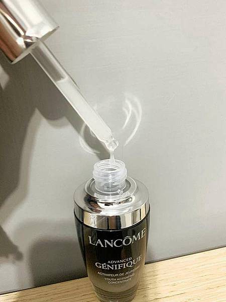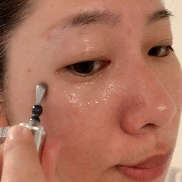 我的用法是在卸妝清潔及拍上化妝水後直接當作精華液使用,再用蘭蔻青春霜鎖水保濕。