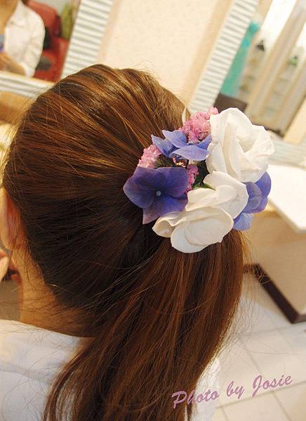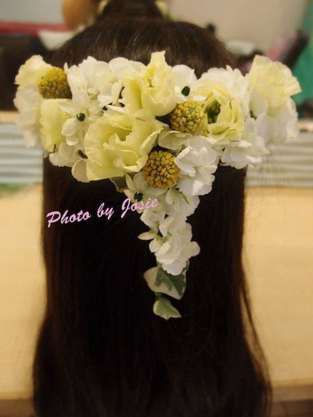 瀑布編髮搭配繡球花頭飾,整個夢幻到不行阿~~~倒~~