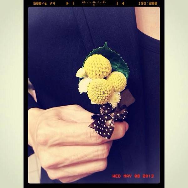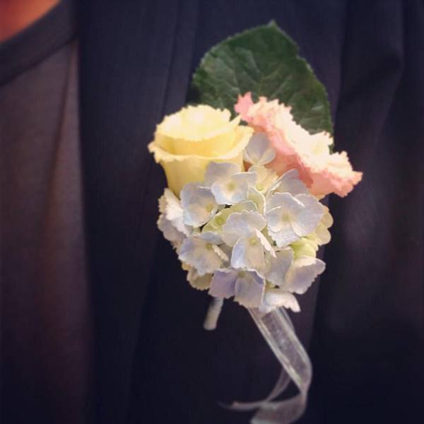 剩下的花材完全不浪費就做給Jerry當胸花,哈哈哈,不是他撿剩的 畢竟新娘當天是主角嘛!就配合一下吧!!