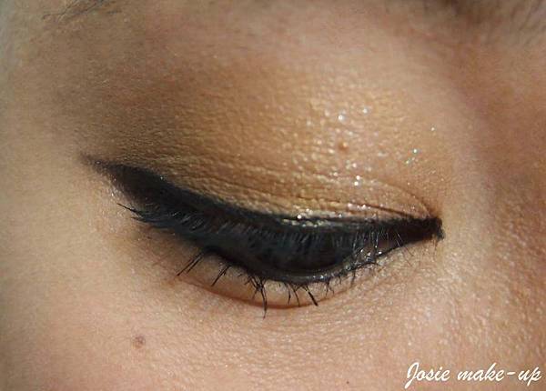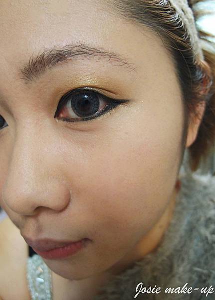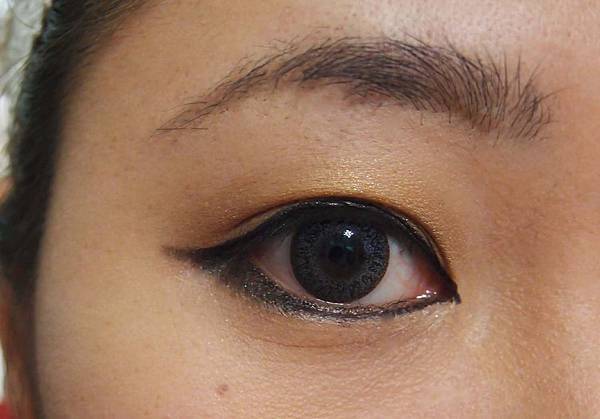 STEP3. 上眼線使用眼線液較能化出往後拉細長的感覺.也較好操作!初學者建議先用眼線膠打底較不易出錯.我們要強調韓系貓眼的感覺,所以記得化的時候眼頭的地方化出來些沒有關係.眼尾的地方記得要拉長化一個"ㄑ" 的形狀唷.