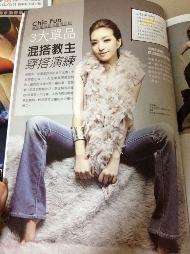 若不知如何穿搭,雜誌內也有大翻領金蔥毛海長版罩衫的多樣穿搭的介紹
