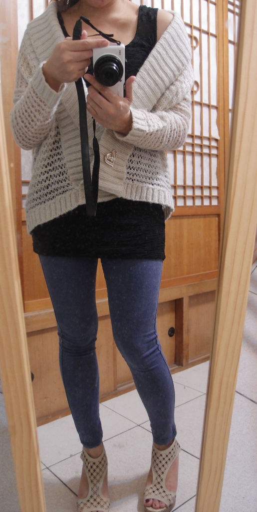 再來則是比較休閒的穿法,上半身其實就是第一件,下半身穿上現在幾乎每個女孩櫃子裡都不可少的legging,