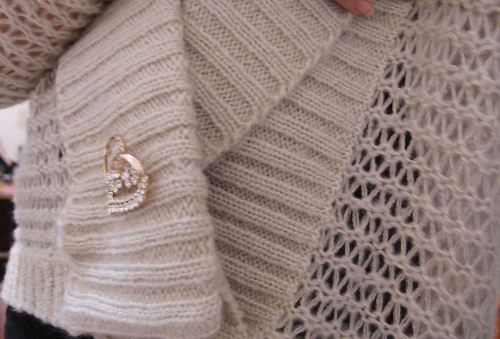 可以做點變化,所以用了手邊的別針固定住罩衫的下方,又多了一種穿法了 呵呵