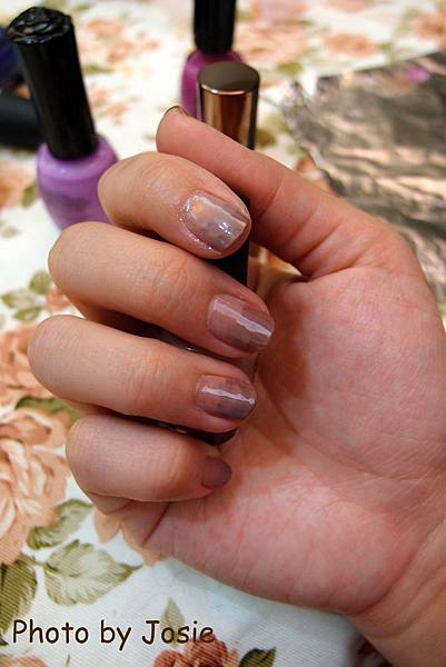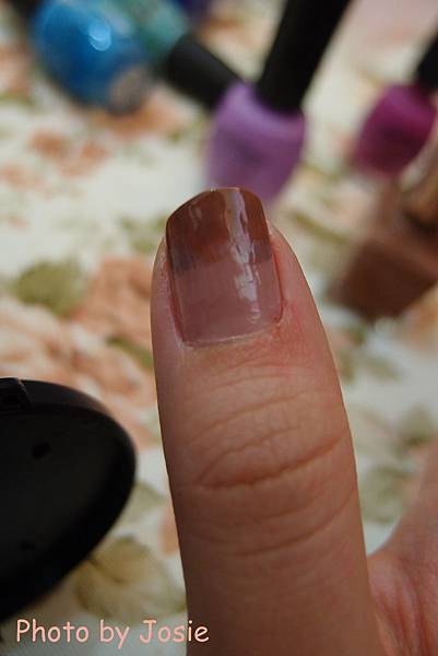接著就用的咖啡色先塗在指甲前端約三分之一處,不用擔心顏色太深