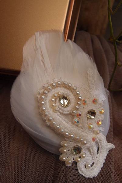 不管是做鮮花飾品,或是像這樣歐美款可以典雅可以華麗的羽毛貨蕾絲飾品,我都非常的樂在其中,