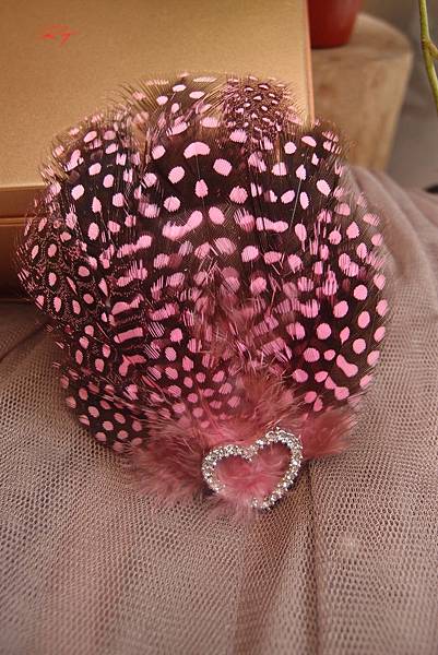 上面的鑽及珍珠是我加工一顆顆再黏上去的.羽毛的面做得比之前的寬