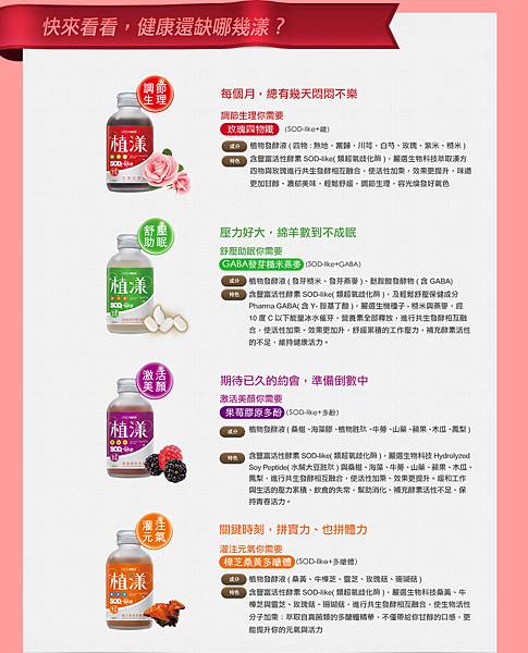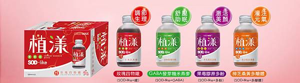 植漾精華飲共有四種不同口味,功效也大大不同.