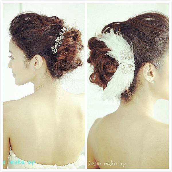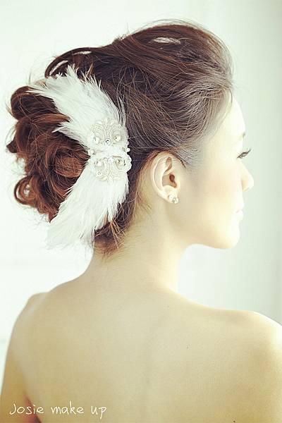 如果低調的新娘可以選擇將羽毛放在後腦勺,放側邊也很美,真是一款多用途!