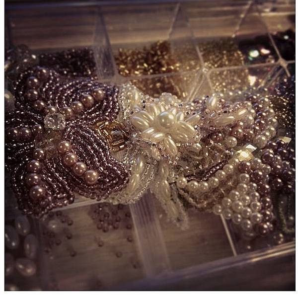 摸了蕾絲及羽毛後,想再挑戰看看完全沒做過的珍珠水晶髮圈.