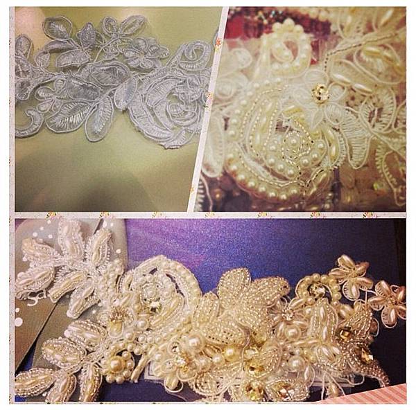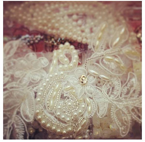 珍珠及鑽搭配蕾絲做出來無論是飾品還是在禮服上,質感都相當的好